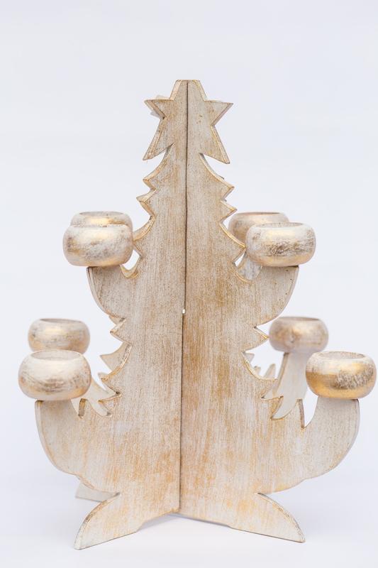 Подсвечник деревянный "елка",белая+золото,высота 40см