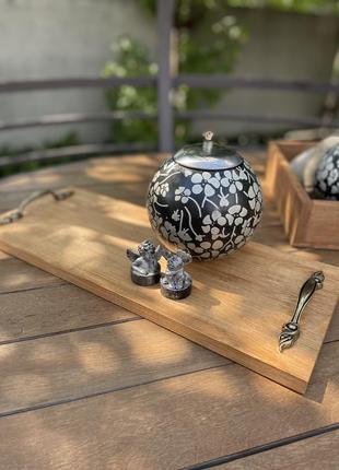 Настільний декор. Підійде як і для подачі їжі так і для предметів декору ⚜️ Розмір 18*200*500 Порода дерева сосна Розмір , колір і дизайн можна робити під замовлення. Ручки теж можна обирати по кольору і дизайну.