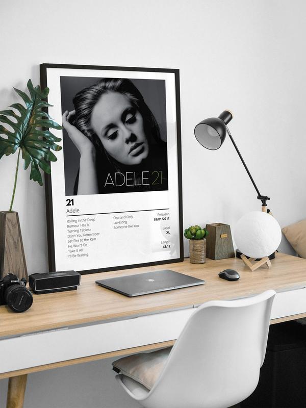 Постер альбому Adele - 21. Формат: А3. Розмір: 30 х 42 см. ⠀ Матеріал: крейдований папір щільністю 200 г/м. Комплектація: постер А3 без рамки. Доукомплектувати рамкою можна окремо під замовлення.
