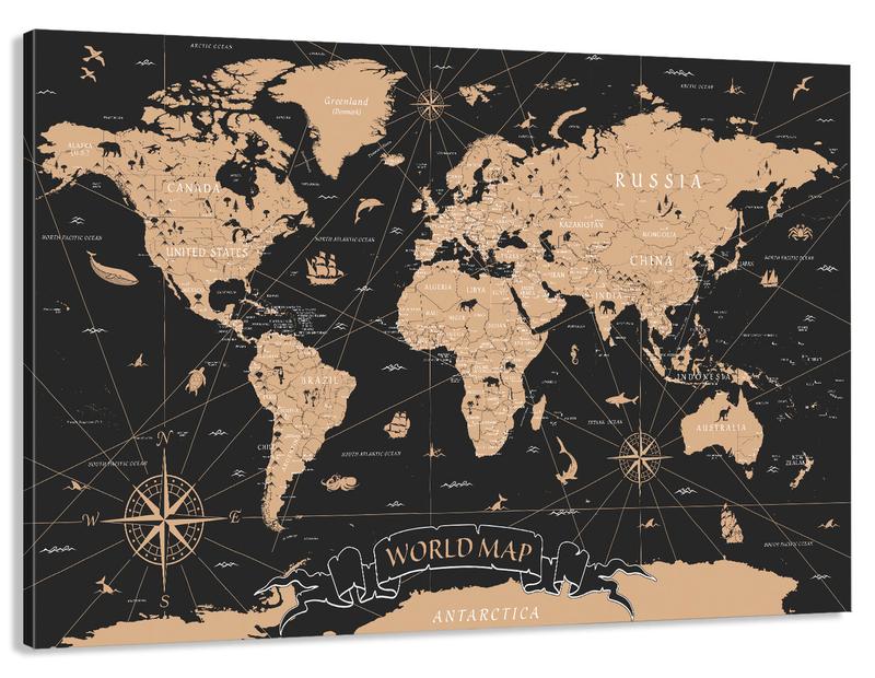 Картина на стену в гостиную / спальню мапа світу mlp_48 с лаковым покрытием