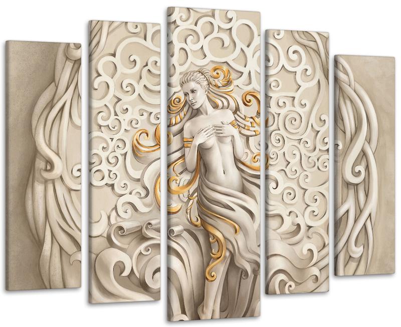 Модульная картина в гостиную / спальню девушка с узорами art-378_5 ( 80х118см ) с лаковым...