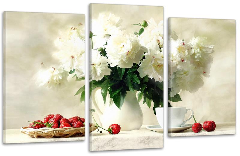 Модульная картина в гостиную / спальню білі піони у вазі art-695_3 с лаковым покрытием