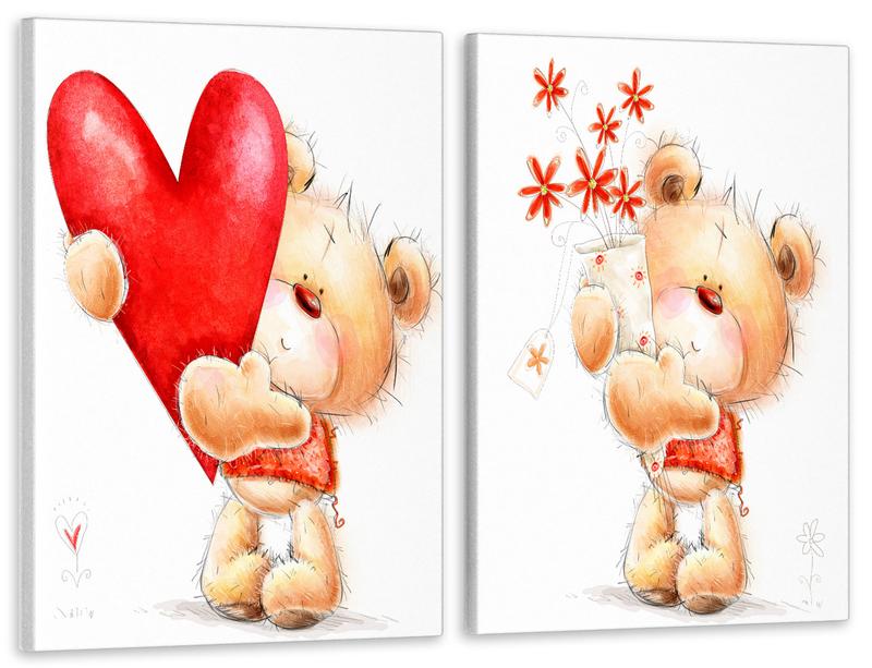 Модульная картина в гостиную / спальню ведмедики кохання tlv-2_031 с лаковым покрытием