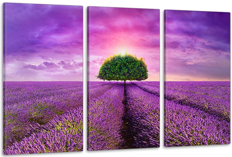 Модульная картина в гостиную / спальню лавандове поле art-197_3a с лаковым покрытием