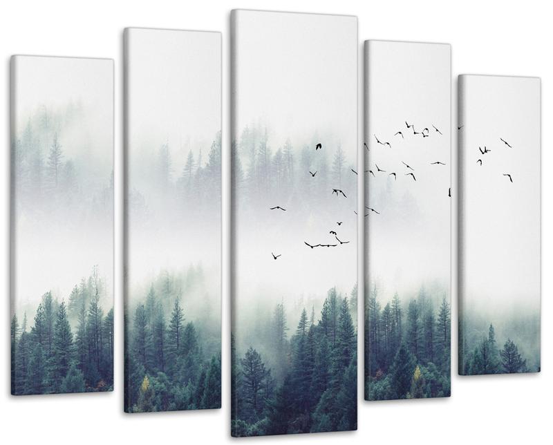 Модульная картина в гостиную / спальню туманный лес art-417_5 ( 80х118см ) с лаковым покры...
