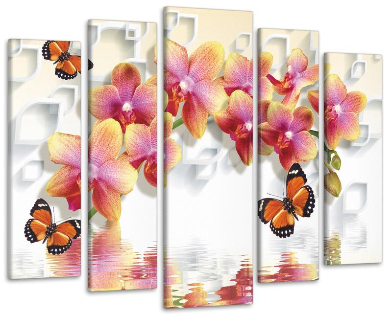 Модульная картина в гостиную / спальню цветы орхидея и бабочки art-372_5 ( 80х118см ) с ла...