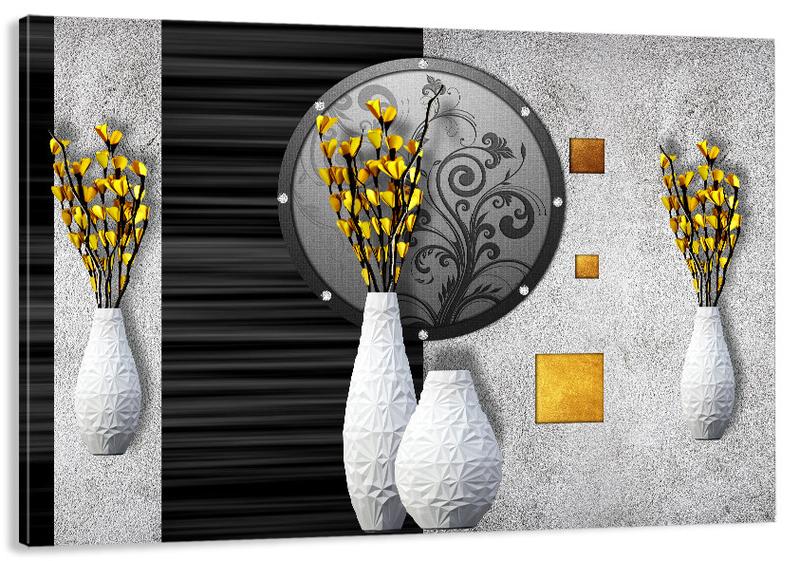 Картина холст в гостиную / спальню вазон з жовтими квітами mlp_157