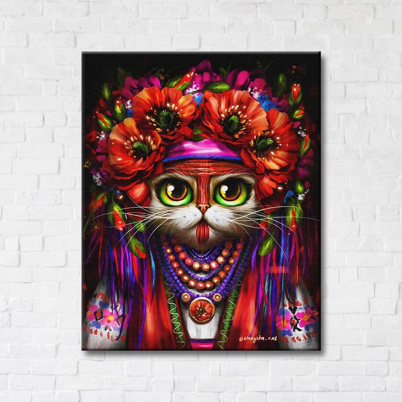 Размер 50x60 см 100% Ручная работа с использованием лучших материалов: Ткань – холст полиэстеровый, плотность 240 гр/м2 Краска – пигментная, на водной основе, интерьерная Подрамник – хвойная порода, ель Натяжка – галерейная, боковые части картины закрашены
