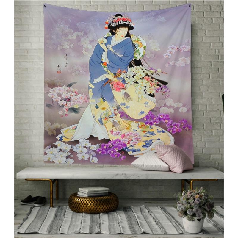 Гобелен на стену с изображением гейши из материала полиэстер, декоративное полотно