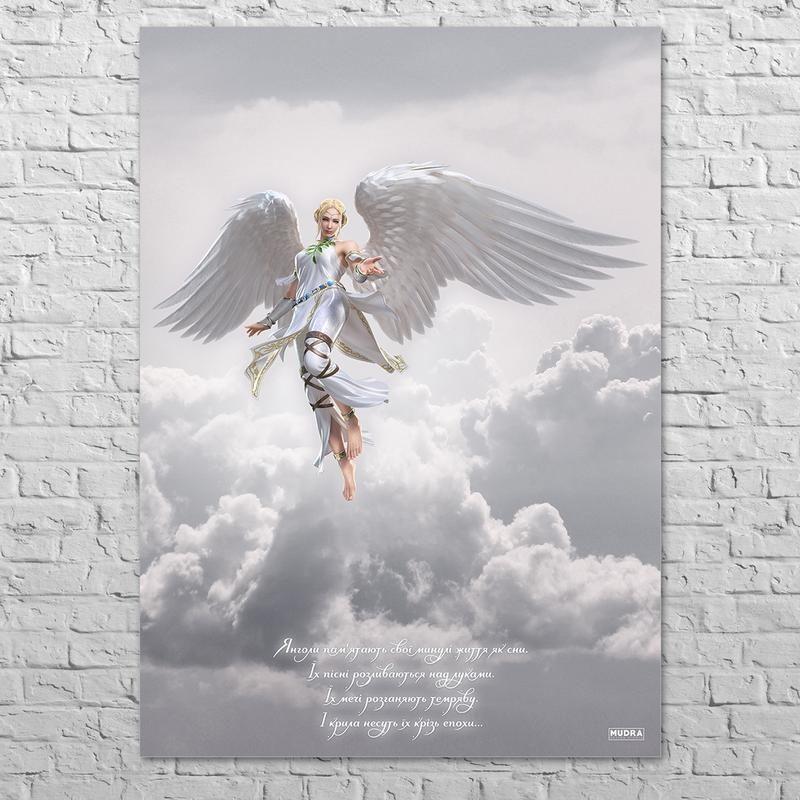 Плакат с ангелом в небесах. Внизу плаката такие слова: Ангелы помнят свои прошлые жизни как сны. Их песни разливаются над лугами. Их мечи разгоняют темноту. И крылья несут их сквозь эпохи... Образ и слова навеянные персонажем из Коллекционной Карточной Игры "Magic: The Gathering". Размер 60х84 см.