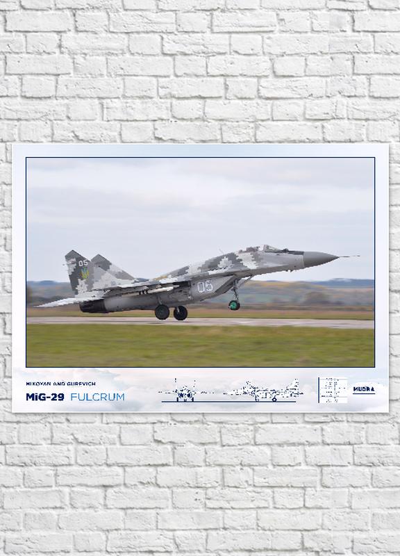 Многоцелевой истребитель четвёртого поколения. Первые серийные МиГ-29 появились в ВВС СССР в 1983 году. В настоящее время такие самолёты стоят на вооружении многих стран мира, в том числе Украины. Кодовое имя в НАТО – Fulcrum. На фото украинская модификация МиГ-29МУ1 в пиксельном камуфляже. Размер 84х60 см