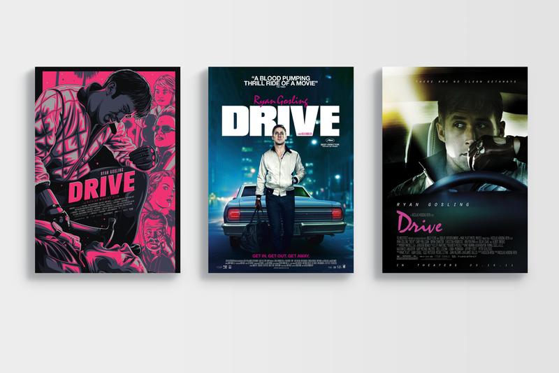 Набір постерів фільму драйв у рамках / drive / 3 шт (раян гослінг)