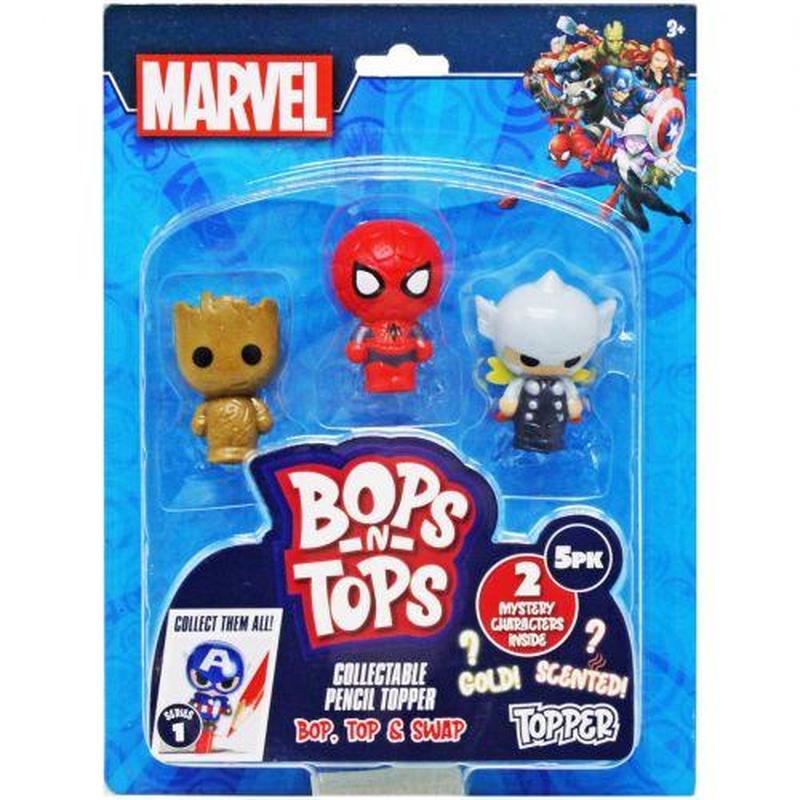 Набор фигурок-топперов для карандашей и ручек в виде героев фильмов и комиксов Marvel. В наборе 5 фигурок и 2 из них являются сюрпризом. Фигурки прекрасно подходят для коллекционирования. Всего в серии есть 18 уникальных фигурок, могут попасться фигурки с ароматом или золотистым покрытием. Бренд: Sambro Упаковка: Планшет Цвет: Разноцвет Вес в упаковке: 120 г Габариты в упаковке: 3.5 x 16 x 21 см Габариты без упаковки: 3 x 4.5 x 3 см Cтрана производитель: Китай Материал: Комбинированный Комплектация: 5 фигурок