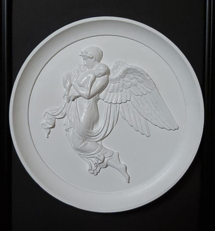 Репродукція барельєфу створена на основі мотивів датського скульптора Бертеля Товальдссона. Барельєф, виконаний вручну з міцного гіпсу, зображує грецьку богиню ночі Нікту (Нікс), яка тримає на руках своїх синів. Цей ангельський образ «Ночі» стане прекрасним декором в скандинавському стилі і принесе благодать і спокій у ваш будинок. Нейтральний білий (сiрий) колір барельєфа підійде для будь-якого інтер'єру. Зі зворотного боку є петля для підвішування на стіну. Також в комплекті є підставка. Ви можете самі вибрати, як розташувати барельєф, повісити або поставити його. Догляд: Витріть пил м'якою тканиною або м'якою щіткою. Уникайте розчинників для чищення.