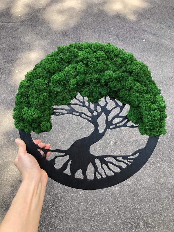 На фото діаметр 40 см При замовленні можливе виготовлення індивідуальних розмірів. Колір моху та дерева на вибір. (Термін виготовлення утонюйте) *Також можливо змінити розмір(від 30 см до 150 см) Стабілізований мох-це справжня знахідка, адже за ним не потрібно доглядати, від слова зовсім. Переваги моху: -зберігає насичений колір та природну м'якість до 10ти років -гіпоалергенний; -має антистатичну поверхню (за рахунок гліцеринового розчину в якому він вимочується, пил на ньому не накопичується) -його не потрібно обприскувати, поливати; -Не вимагає освітлення; -в ньому не заводяться комахи, різні шкідники та пліснява Головні поради для продовження терміну експлуатації моху: - не мох під пряме сонячне проміння якщо мох щодня світитиме сонце, він швидко вицвіте - не розміщуйте мох біля нагрівальних приладів (кондиціонерів, батарей, навіть теплої підлоги) відстань від приладів має бути від 1 м-коду. - не мочіть і не обприскуйте водою якщо мох намочити з поверхні змиється розчин, таким чином він буде сохнути і втрачати колір - Підтримуйте вологість повітря 30-70% вологості якщо вологості у приміщенні недостатньо, її можна підвищити зволожувачем повітря - Забирайте пил з поверхні раз на 4-6 місяців делікатним рухом щіткою для пилу або холодним струменем повітря фена У нас ви отримуєте: _Кращу ринкову ціну _Якісний продукт _Детальну консультацію