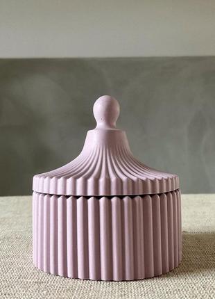 шкатулка из гипса. подходит для хранения бижутерии и небольших украшений\ предметов. прекрасной подойдёт для украшения интерьера , так же в качестве предмета фотосессии. размеры : высота 9см , ширина 8 см, высота без крышки 3.5 см примерный обьем 175мл цвет : лаванда цвет изделия может немного отличаться от фото