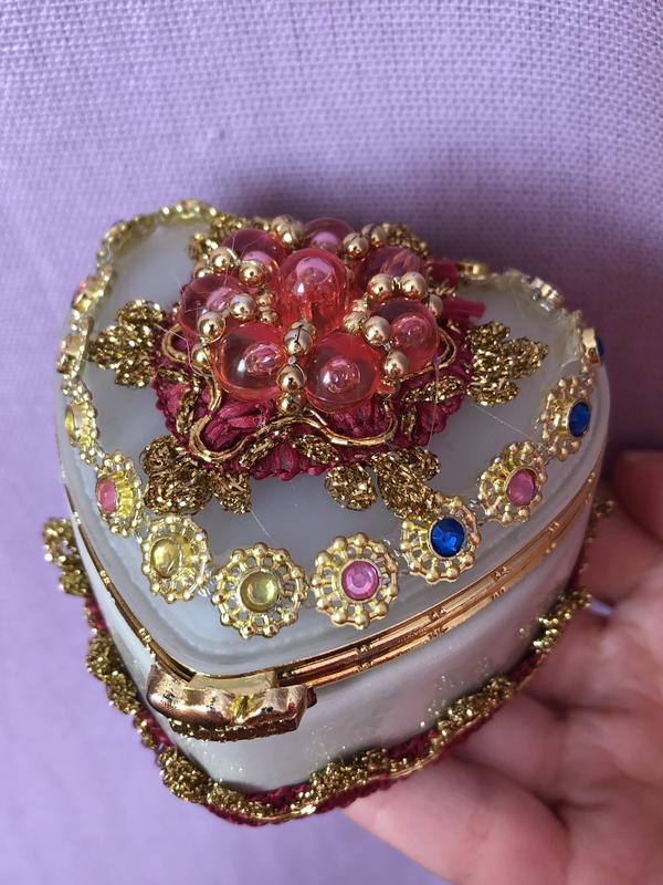 Декоративна скринька коробочка для прикрас дрібних деталей з дзеркалом візерунком намистин...