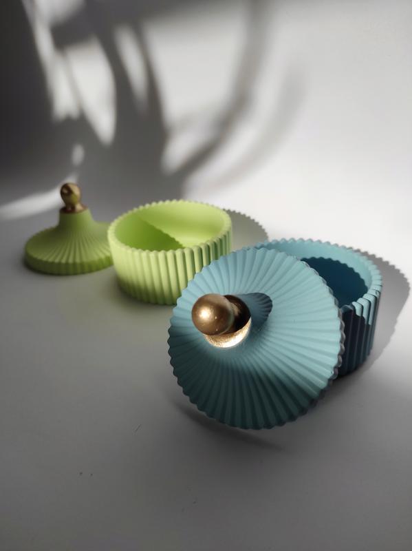 шкатулка из гипса. подходит для хранения бижутерии и небольших украшений\ предметов. прекрасной подойдёт для украшения интерьера , так же в качестве предмета фотосессии. размеры : высота 9см , ширина 8 см, высота без крышки 3.5 см примерный обьем 175мл цвет :голубой , лимонный, пепельно-синий цена за шт цвет изделия может немного отличаться от фото