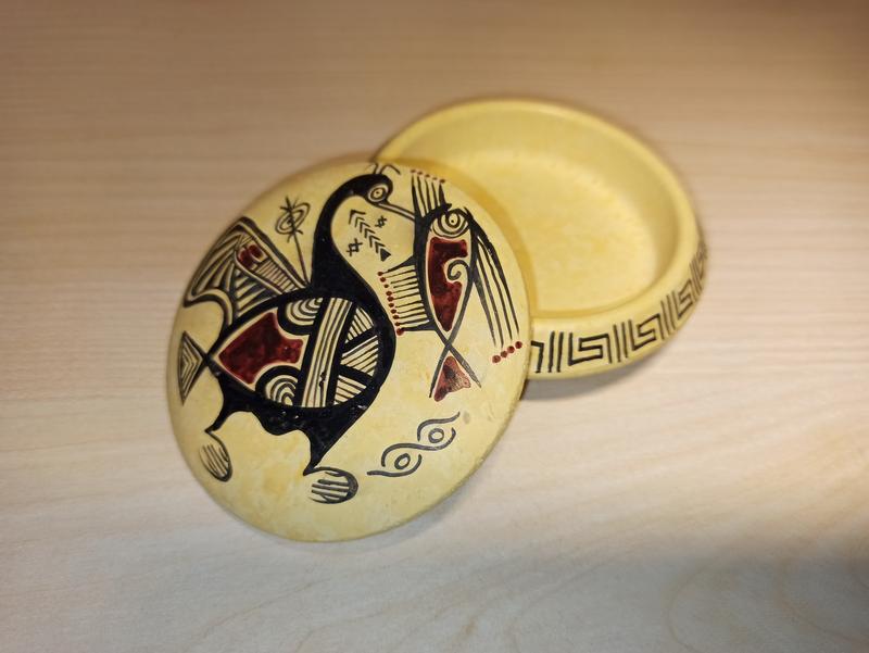 Небольшая, расписная, ручная работа, шкатулка из Кипра. Размер выса 3,5 см, ширина 8 см