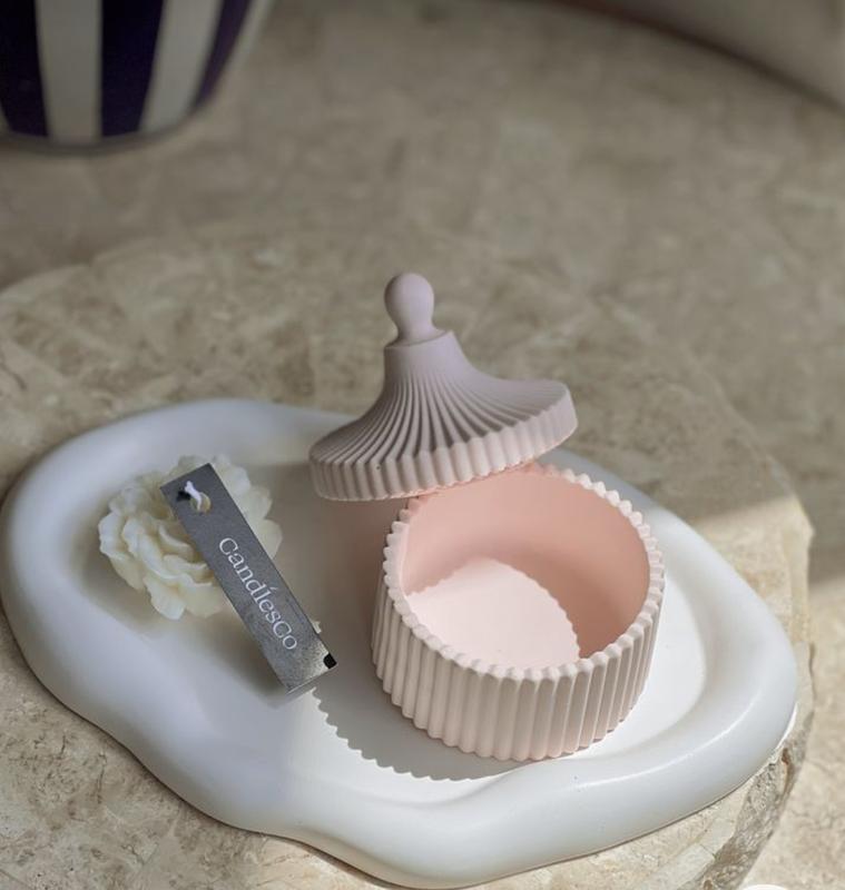 шкатулка из гипса. подходит для хранения бижутерии и небольших украшений\ предметов. прекрасной подойдёт для украшения интерьера , так же в качестве предмета фотосессии. размеры : высота 9см , ширина 8 см, высота без крышки 3.5 см примерный обьем 175мл цвет нежно розовый цвет изделия может немного отличаться от фото