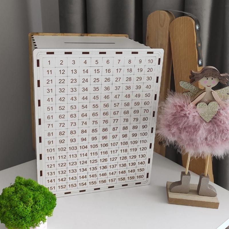 Копілка на 365 днів. Матеріал - дерево Розмір: Висота -25,5 Ширина-20,5 Глибинах - 17,5