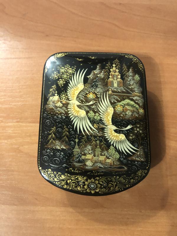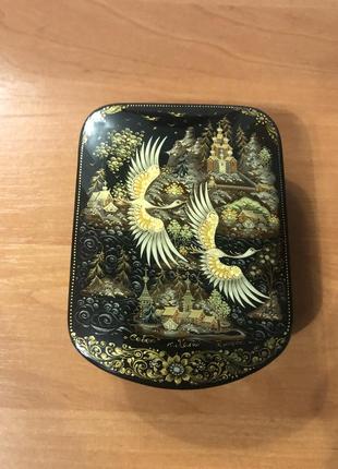Робота розписана в кращих традиціях лакової мініатюри із застосуванням темперних фарб, лаку і лляної олії. Яскрава шкатулка - відмінний подарунок дорогій людині з будь-якого приводу. Скринька оригінальна, нова, без дифектів. Розмір: 12,5х9,5х3 см