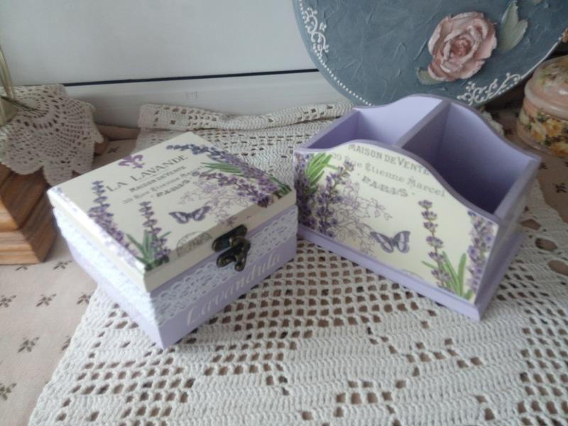 Набір предметів ручтой роботи в техніці декупаж. Нвбор складається з скриньки 12*12*7 і підставки під гребінця або косметику.