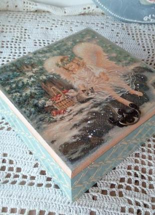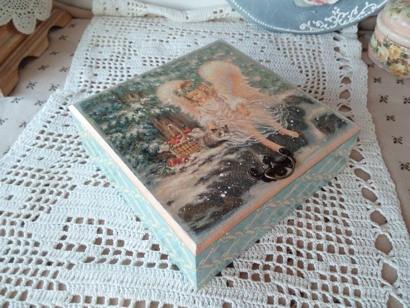 Шкатулка ручной работы в технике декупаж.На боках шкатулки -обьемный узор. Размер изделия 18*18*7
