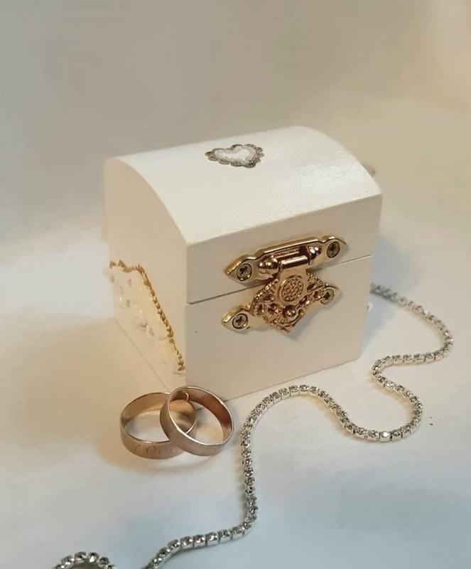 Скринька для кілець,матеріал дерево.Виконаю в будь-якому кольорі.Власне виробництво дерев'яних заготовок. Додаткові характеристики: Призначення: Для запонок Призначення: Для кілець Призначення: Для прикрас Матеріал: Дерево