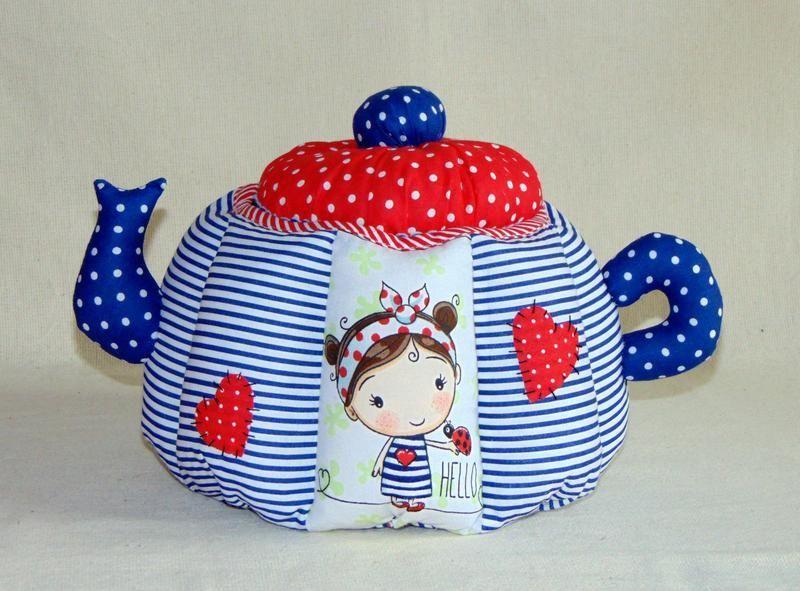 Декоративный чайник из ткани ручной работы. Натуральные ткани разных расцветок, наполнитель холлофайбер. Этот чайник может использоваться для хранения заколок, катушек с нитками и прочих мелочей. Деликатная стирка, не выкручивать. Диаметр 22 см. Хендмейд поделки из хлопка и других натуральных тканей абсолютно безопасны для детей.