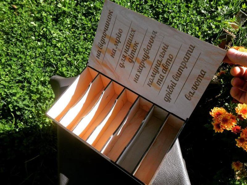 Шкатулка семейный бюджет. Заставит Вас правильно планировать расходы. Материал береза. Размеры 285х165х80 мм Цена 350 грн. Можно нанести гравіровку с именами, инициалами или логотипом. Дополнительные характеристики: Назначение : Для денег