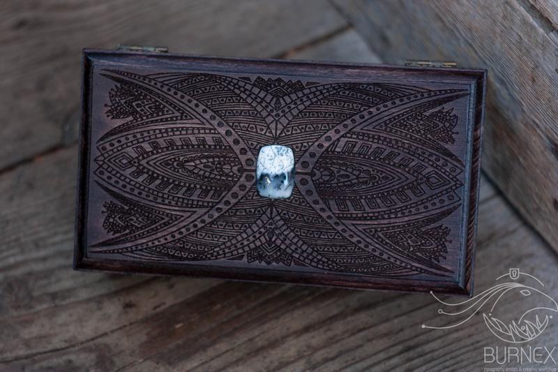 Не так давно совершенно неожиданно реанимировался старый проект (он здесь уже появлялся ранее), и я подумал, что он неплохо получится, если его сделать при помощи лазера. Подумал, отредактировал рисунок, и, действительно, получилось весьма... а как вам? Шкатулка может хранить ваши деньги (то бишь быть купюрницей), а также карты или украшения. Да и вообще все, что позволит фантазия и внутренние размеры. Шкатулка "Imagination Black 2". Дерево. Рисунок - лазерная гравировка. Инкрустация - соколиный глаз (который камень). Внутри фетр. Размер 19х10,5х6 см. Внутренний размер 16х8х4 см.