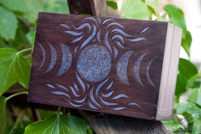 Свеженький проект шкатулки для карт Таро. Я могу и в простые формы). На ваш суд... Шкатулка "Moon Phases" Дерево. Рисунок - пирография (выжигание). Внутри отделано фетром. Размер внешний 15х10х5 см. Товар под заказ