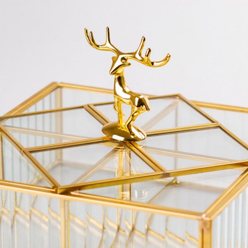 Шкатулка для украшений Золотой олень прямоугольная стекло с металлическим каркасом 18х18,5 см Погрузитесь в мир утонченности с нашей шкатулкой для украшений "Золотой олень". Эта уникальная шкатулка в форме прямоугольника, выполнена из стекла с металлическим каркасом. Венчает дизайн этой шкатулки изысканная фигурка оленя, ставшая также удобной ручкой для поднятия крышки. Размеры 18х18,5 см придают этой шкатулке достаточное пространство для хранения украшений, а ее элегантный дизайн с золотистыми оттенками добавит изысканности вашему интерьеру. Основные характеристики Шкатулка для украшений Золотой олень прямоугольная стекло с металлическим каркасом 18х18,5 см МатериалСтекло Тематика рисунка/формыЖивотные ЦветЗолотистый СостояниеНовое ФормаПрямоугольная