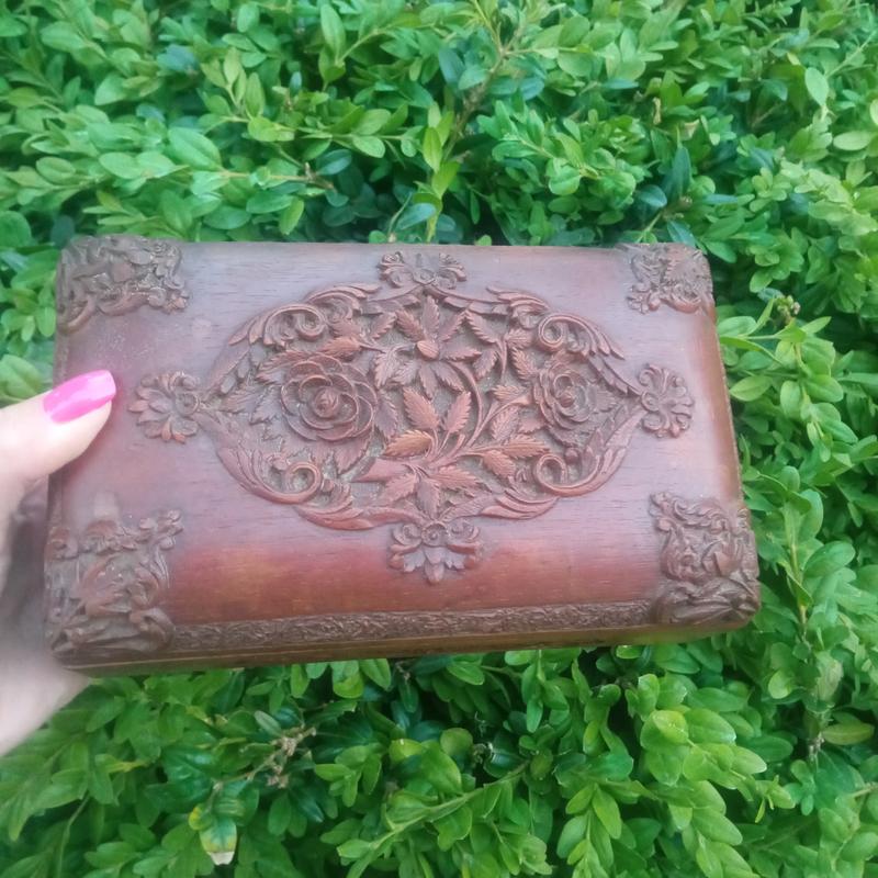Шкатулка полностью резная из натурального дерева в хорошем состоянии.винтаж.англия