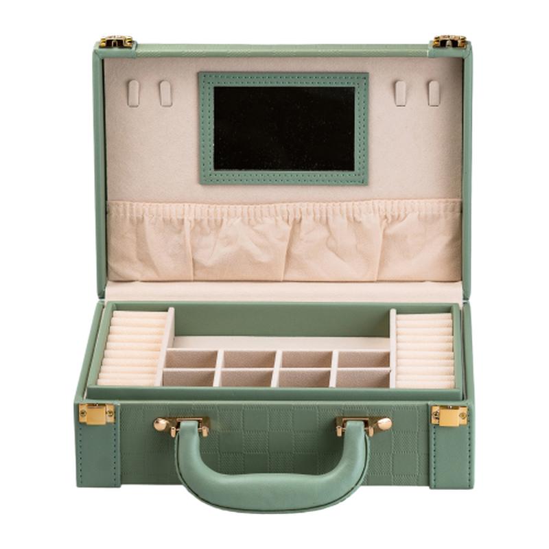 Шкатулка для украшений 27*18,5*9 см из экокожи Преимущества: Компактный размер Мягкая и приятная на ощупь текстура эко-кожи Откидная крышка с магнитным замком Зеркало внутри Стильный дизайн Описание: - цвета: оливковый, серый, белый - Количество ярусов1 - Назначение: Для украшений - Высота: 9 см - Ширина: 18.5 см - Длина: 27 см - Внутреннее покрытие: Текстиль - Вес: 1.220 кг - Форма: Прямоугольная - Материал корпуса: МДФ Цена: 1159 грн.