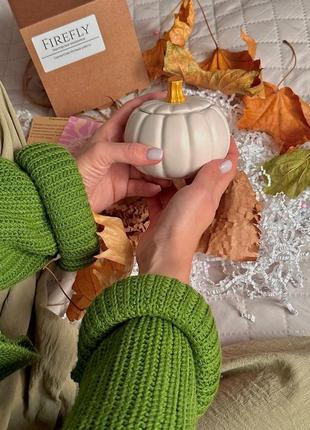 Шкатулка тыква украсит ваш интерьер. Материал высокопрочный гипс Размеры : длинна с крышкой 9.3 см, ширина 10 см Цвета : белый с золотым хвостиком