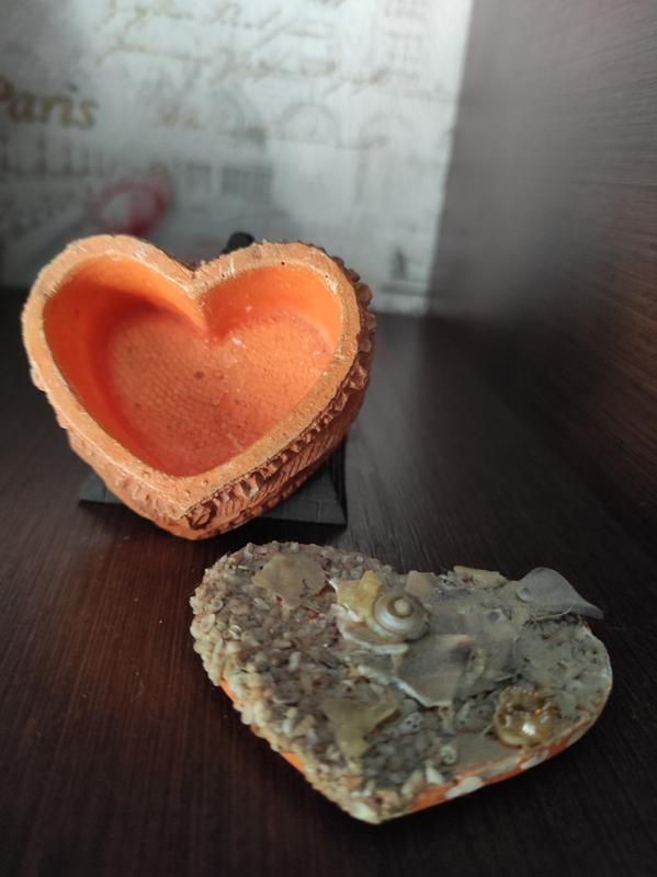 Сувенірна керамічна мінішка у формі сердечка На кришечці розсип дрібних черепашок