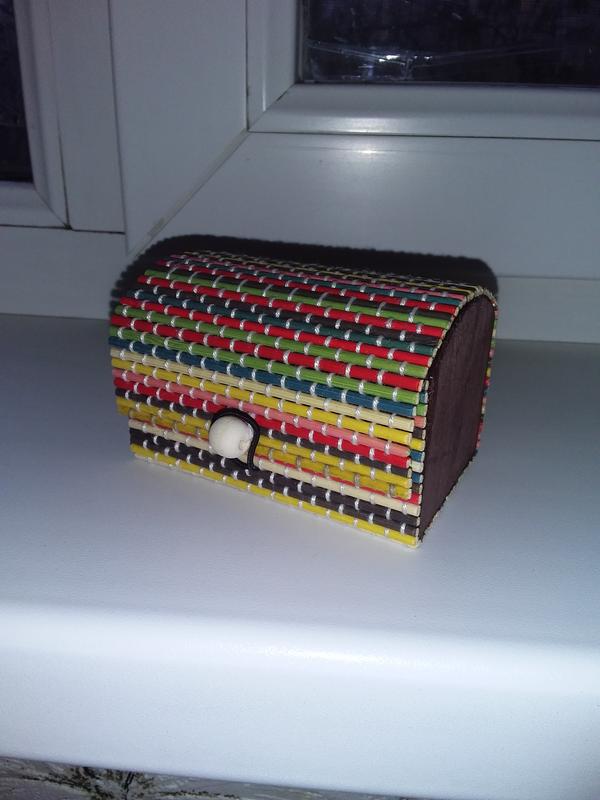 Новая, небольшая, винтажный ящик для хранения украшений. Заміри на фото. Материал - бамбук, стенки по бокам - дерево.