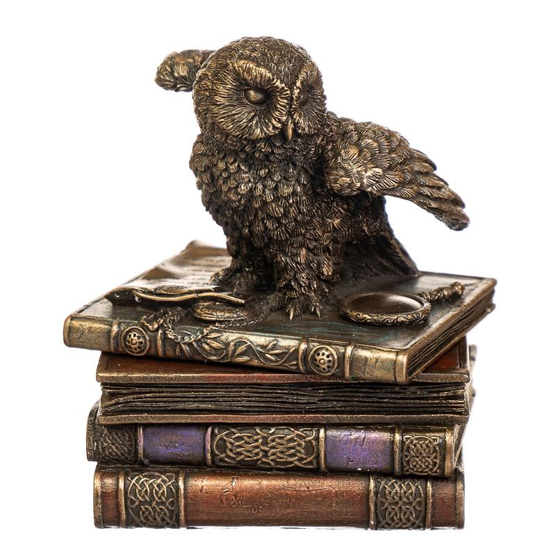 Скринька для прикрас veronese сова на книгах - символ мудоості 12х10 см 75511 бронзове пок...