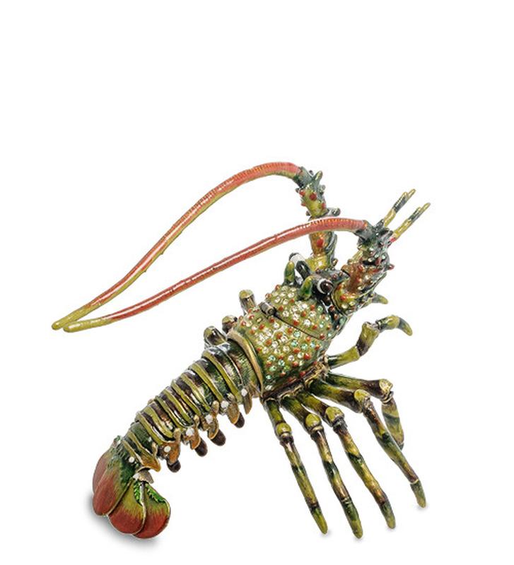 Шкатулка для украшений Лобстер 11 см 1601508 Длина: 11 см; Ширина: 13 см; Высота: 10 см; Вес: 0.3 кг. материал-металл Присмотритесь - это не наш речной рак. Нет клешней, ноги полосатые, усы окрашены в красный цвет, рядом с глазами на стебельках растут маленькие рожки - это обитатель тропических морей, лобстер, известный деликатес. Но этого рака есть нельзя: он металлический. И к тому же имеет секрет - его усыпанная блестящими кристалликами голова приподнимается, откидывается на петле и открывает содержимое маленькой шкатулочки. В такой удобно держать тот минимальный набор украшений, которые вы носите каждый день - сережки, пару колечек, цепочку. Они будет храниться в полном порядке и останутся легко доступными по первому же требованию.
