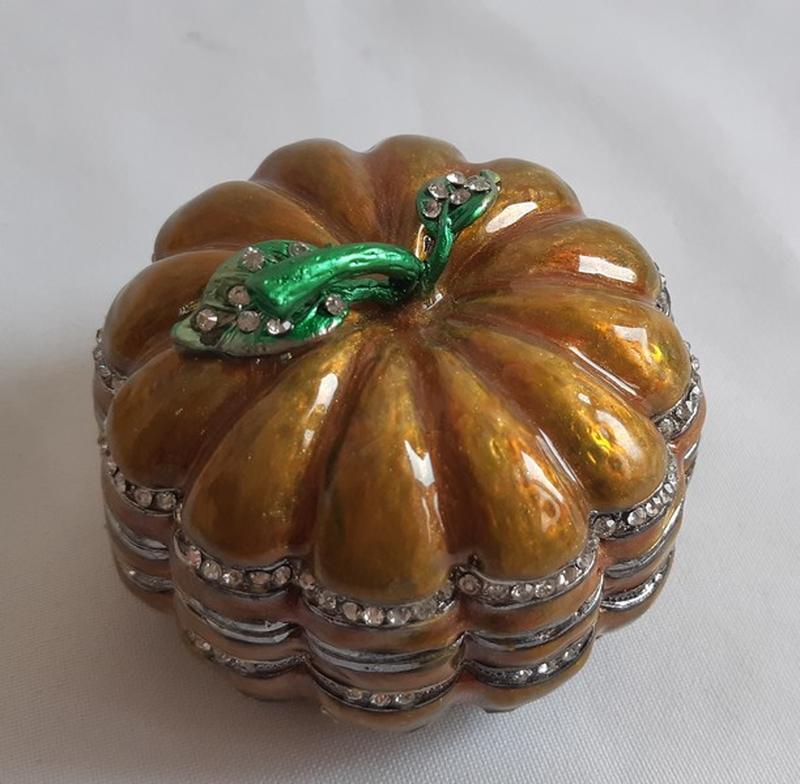 Статуэтка Шкатулка латунная Гарбуз. Материал латунь, эмаль. Диаметр основания 6 см. Высота 4 см. Новая.
