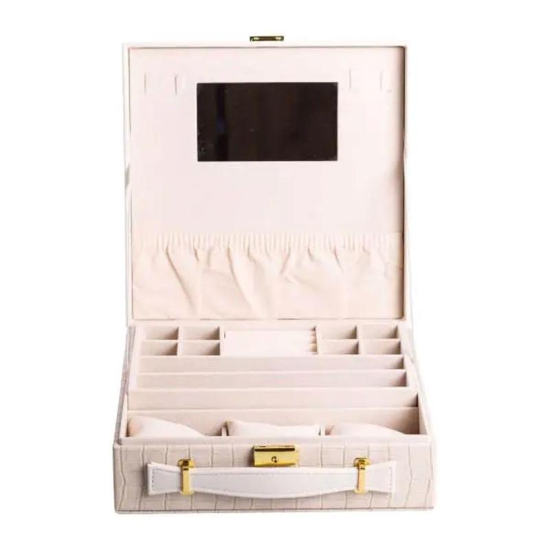 Шкатулка для украшений из эко кожи, 2 яруса - идеальный органайзер для бережного хранения ваших ювелирных изделий. Компактный и функциональный дизайн с размерами 26×26×9 см обеспечивает удобство использования и легкость хранения. Выполненная из качественной эко кожи, эта шкатулка станет стильным дополнением любого интерьера, сочетая в себе практичность и элегантность. Основные характеристики органайзера для хранения бижутерии размеры шкатулки для украшений 26×26×9 см; количество ярусов - 2 шт; количество отсеков - 20 шт; материал корпуса - экокожа; внутреннее покрытие - велюр; зеркало в комплекте. Шкатулка оборудована двумя вместительными ярусами, предлагающими 20 разнообразных отсеков. Это позволяет аккуратно разместить кольца, серьги, цепочки, браслеты и другие украшения, предотвращая их повреждения и спутывание. Внутреннее покрытие из мягкого велюра обеспечивает дополнительную защиту от царапин и повреждений. Основные преимущества шкатулки для украшений из эко кожи Экологичная кожа приятна на ощупь, долговечна и устойчива к внешним повреждениям, а велюровое покрытие внутри бережно хранит драгоценности и предотвращает появление царапин. Благодаря 20 отдельным отсекам и двум просторным ярусам, все украшения аккуратно размещены и всегда находятся под рукой. Современное исполнение и сдержанные цвета органично вписываются в любой интерьер, превращая органайзер в стильный элемент декора. Встроенное зеркало добавляет функциональности и облегчает выбор украшений. Отличное решение для подарка по любому поводу: День рождения, 8 марта, годовщина, День святого Валентина или Новый год. Дополнительным преимуществом модели является встроенное зеркало, удобное для примерки украшений и ухода за собой. Шкатулка из эко кожи отлично подходит в качестве подарка на любой праздник, а также будет полезным приобретением для личного использования. Купить шкатулку для ювелирных изделий можно с доставкой по всей Украине.