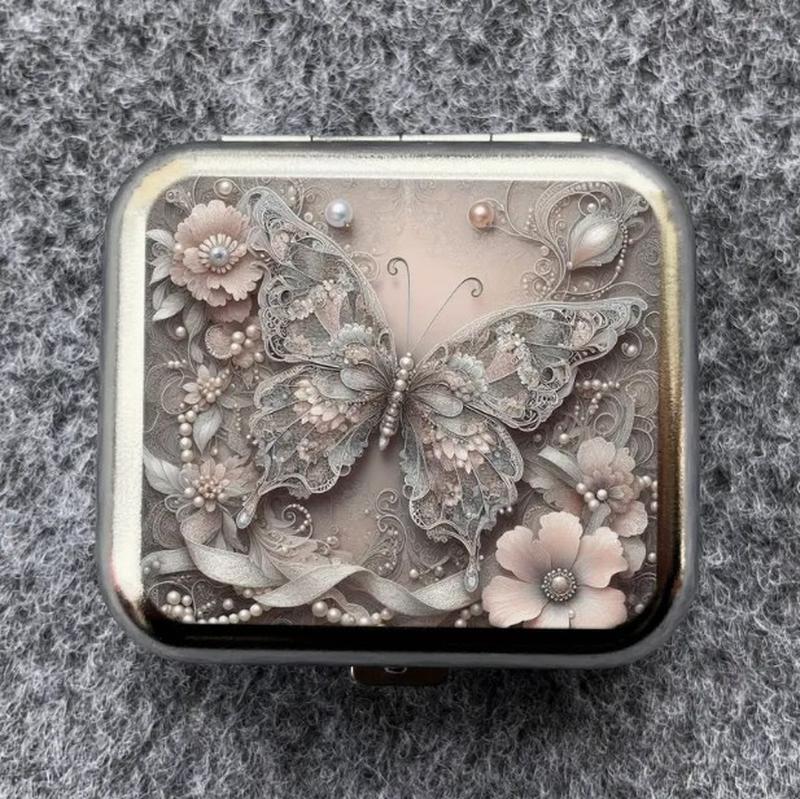 Карманная мини-попелевка из нержавеющей стали с наклейкой бабочки на крышке