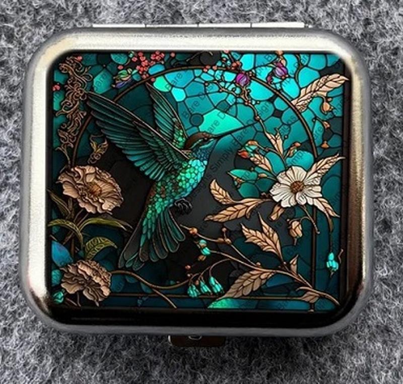 Карманная мини-попелевка из нержавеющей стали с наклейкой птички колибри на крышке.