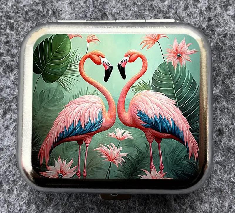 Карманная мини-попеленка из нержавеющей стали с наклейкой "влюбленные фламинго" на крышке