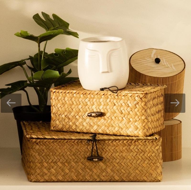 Скринька плетена Sin Say розміром 20x12x8см. Стильна акцентна деталь 🧺для декору інтерʼєру та ідеальна як зручний органайзер для зберігання будь-яких речей… прикрас, косметики тощо… Завдяки тому, що поверхня скриньки вкрита тасьмою, яка здається зробленою з висушеного листя довгих екзотичних трав, це дуже етнічний аксесуар. Вона застібається за допомогою шпильки та довгастої кнопки, тому вам не доведеться турбуватися про те, що її вміст випадково висиплеться. Скринька має кубоподібну форму і розміри 20x12x8 см. До однієї з довгих сторін прикріплена кришка. Вона застібається за допомогою гумки та коричневої кнопки. У вартість вже враховано 15% комісію шафи