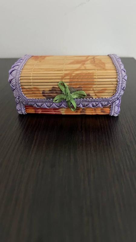 Шкатулка для прикрас з бамбука з фіолетовим оздобленням