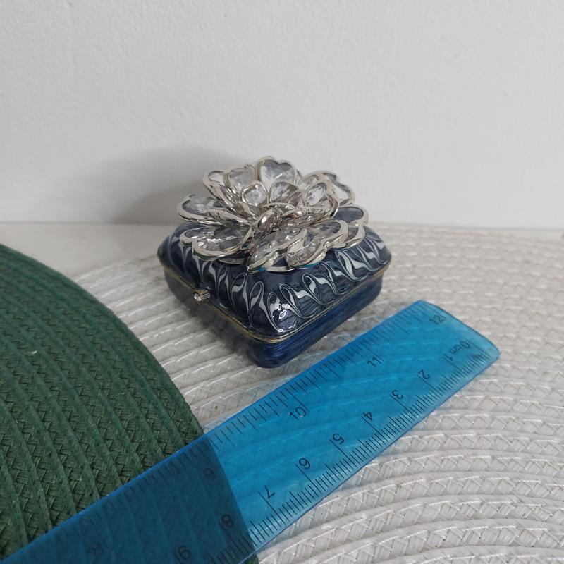 Винтажный ящик для украшений со стеклянным цветком по центру.
