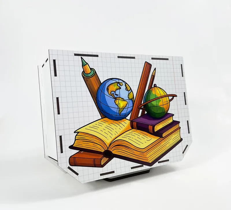 Яркая коробка-сундук с обучающей тематикой – идеальное решение для хранения вещей в школе, дома или офисе учителя. Дизайн с глобусами, книгами, линейками и карандашом на фоне в клетку символизирует знания, развитие и обучение. Шкатулка станет отличным подарком для учителя, ученика или просто любителя образования. В нее удобно складывать канцелярию, школьные принадлежности, тетради или подарочные наборы. Ее стильный вид подойдет как к классному интерьеру, так и к детской комнате.